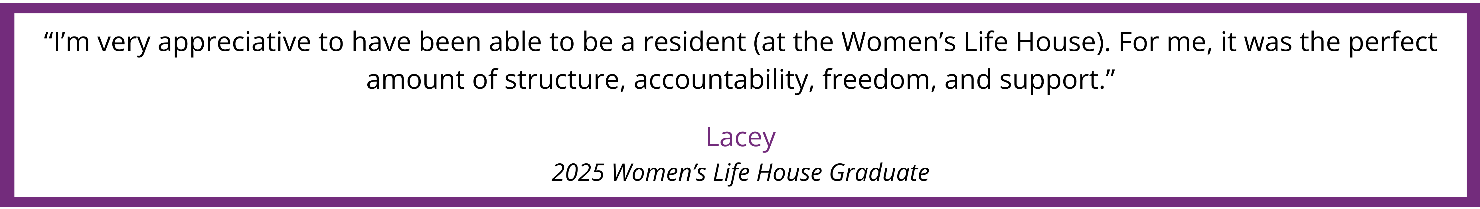 As a four-phase program, the Women’s Life House is designed to meet women at their crossroads and help them get back on track to living a successful life.